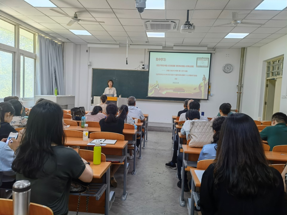 李金玉首先进行学习资料导读:习近平总书记2022年2月25日在十九届中央政治局第三十七次集体学习时的讲话《坚定不移走中国人权发展道路 更好推动我国人权事业发展》;接着进行《中西方人权观之比较》的专题辅导交流。