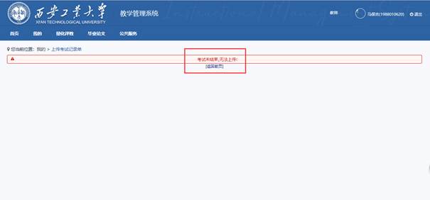 点击我的->上传考试记录单,进入上传考试记录单显示页面(图1.1.1),根据当前学期排考批次显示上传考试记录单任务列表,提供上传“考试记录单”、“补考记录单”等功能;
