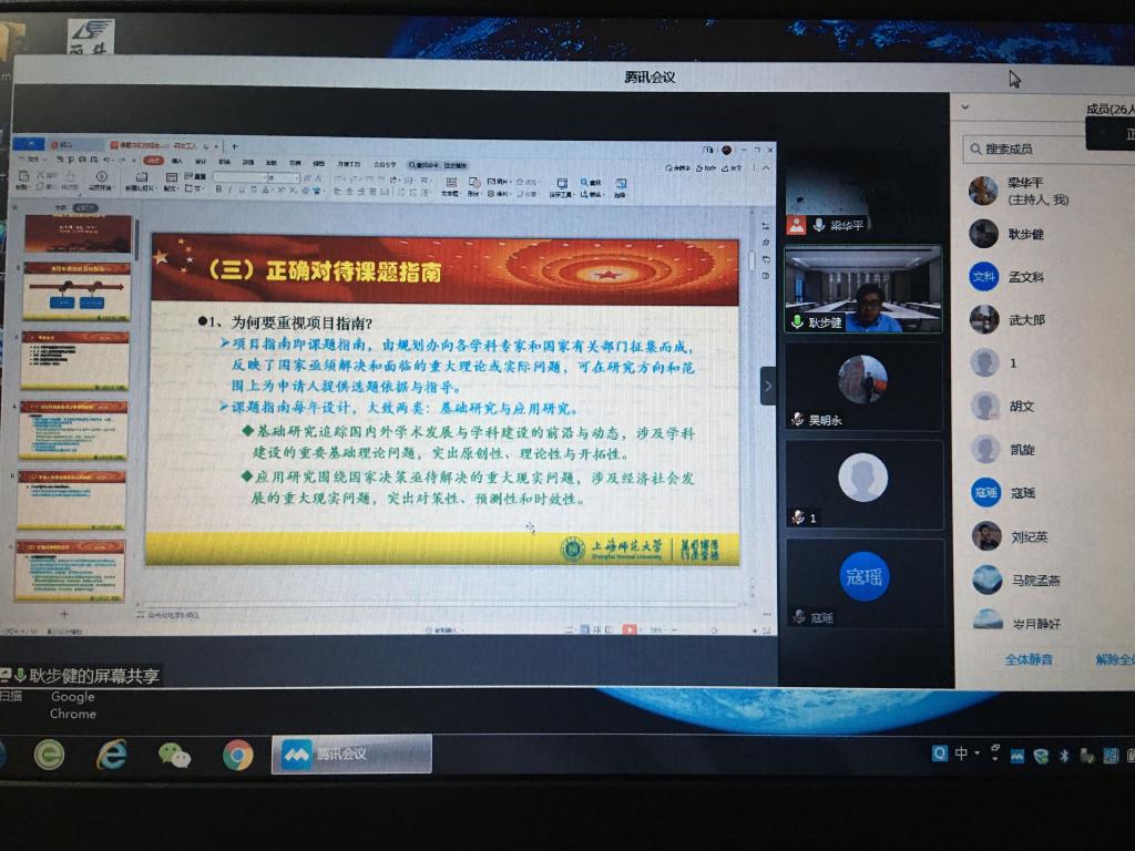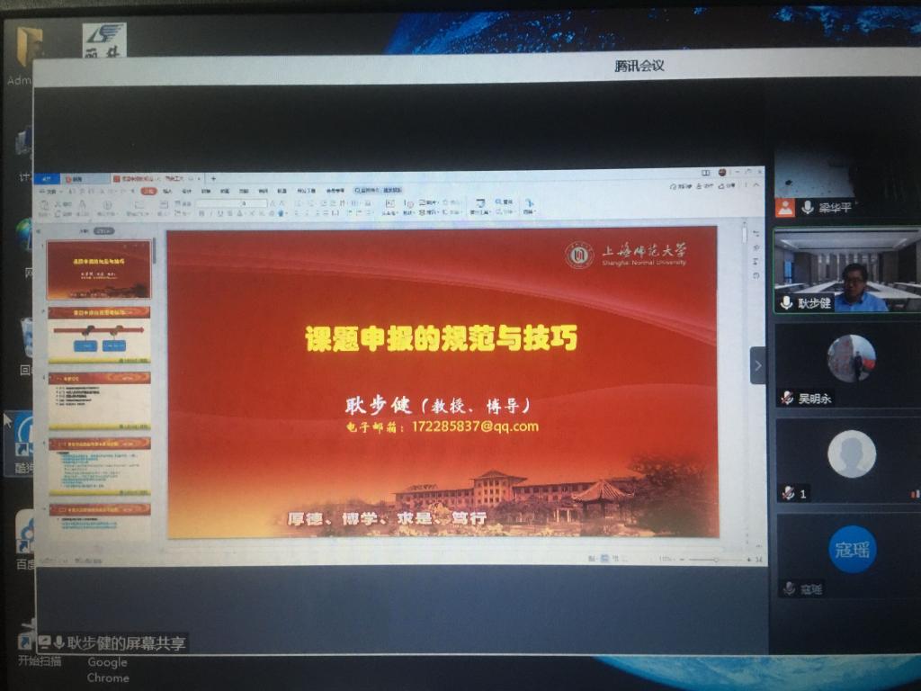 2020年12月10日,MK体育邀请上海师范大学MK体育副经理耿步健教授为全体老师做了题为“课题申报的规范与技巧”的讲座。耿步健教授兼任国家社科基金项目评审专家,教育部学位中心评审专家等职务,具有丰富的基金申报经验。耿教授从国家社科基金项目的申报类别入手,围绕国基金申报书的各部分内容,结合个人撰写经验和评阅经验,系统翔实的解析了每一部分的撰写技巧和注意事项,重点突出,启发性强。