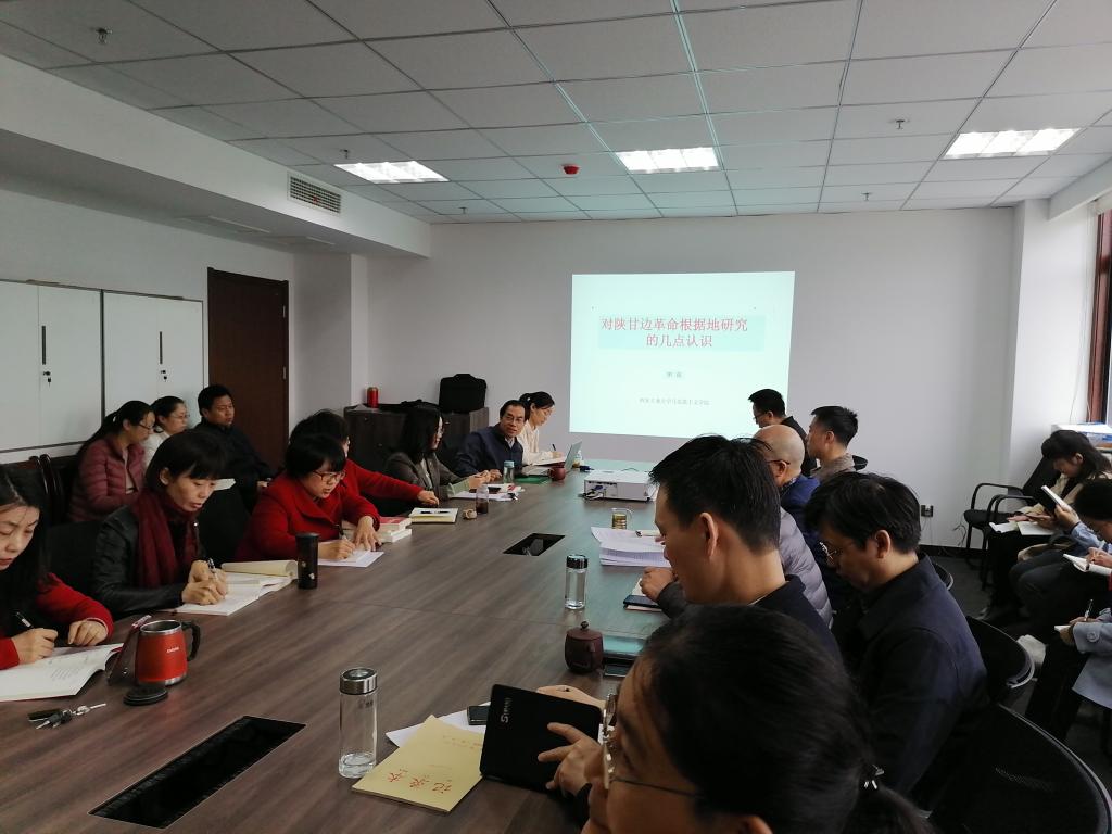 田亮教授主讲的题目是“对陕甘边革命根据地研究的几点认识”,分别从“习近平总书记对陕甘边研究的论述”、“对陕甘革命根据地研究的关注点”、“我的关注点研究建议”三个方面分享了他的学术观点。在场的老师针对陕甘边的历史地位和作用、陕甘边革命领袖人物的研究现状、陕甘边革命根据地建设研究等问题与田亮教授进行了现场交流和讨论。