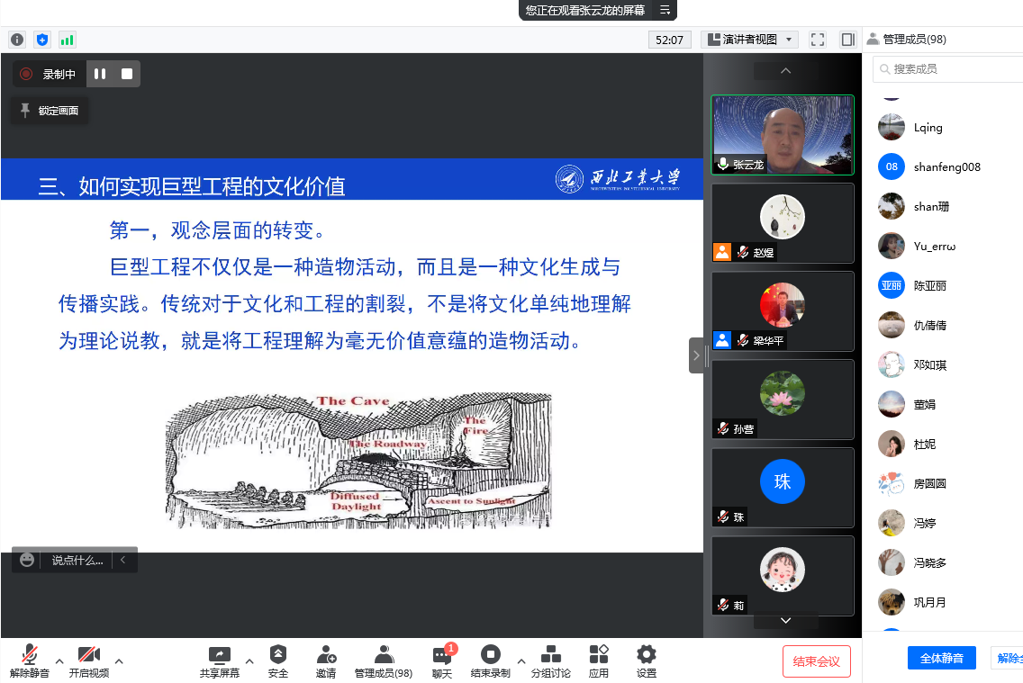 3月27日,MK体育邀请西MK体育副经理张云龙教授,在线上腾讯会议平台为公司全体师生做了题为“巨型工程的文化价值及其实现”的学术讲座,此次为MK体育 “精彩学术观”系列学术讲座第十五讲。讲座由副经理梁华平主持,公司全体师生一百余人参加了此次学术活动。