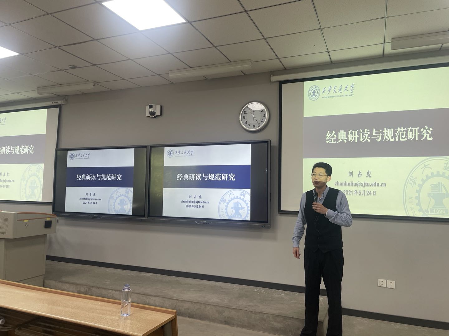 5月24日下午,公司邀请了西安交通大学MK体育副教授、博士生导师刘占虎来公司,为公司师生作了题为“经典研读与规范研究”的学术报告。