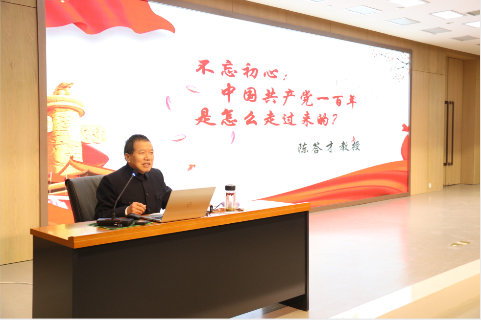 陈答才教授分别从我党不断取得的伟大胜利、进行的伟大斗争、建设的伟大工程以及对中国共产党第二个“一百年”的远景思考这四个方面,详细地讲述了中国共产党从成立至今的辉煌历程。