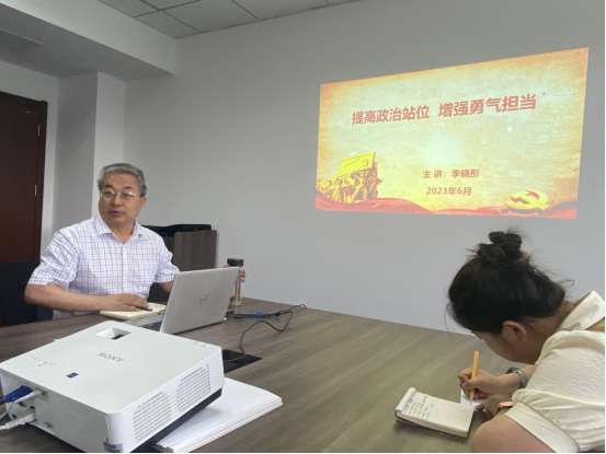 6月15日下午,MK体育研究生第一党支部邀请李晓彤经理为全体党员讲授题为“提高政治站位,增强勇气担当”的专题党课。支部书记杨婧主持会议,全体员工党员参加此次活动。