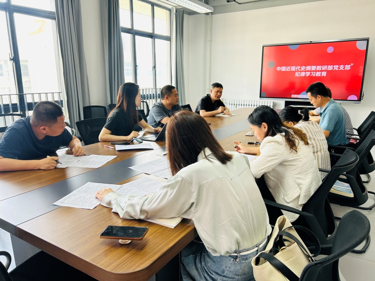 为了深入学习贯彻习近平总书记关于加强党的纪律教育的重要论述,提高全体党员学纪、知纪、守纪的自觉性。2024年5月27日上午,中国近现代史纲要教研部党支部在教7-502进行党纪学习教育专题会议。会议由党支部书记王立军主持。会议共分为两个阶段:第一阶段学习《中国共产党纪律处分条例》(以下简称《条例》);第二阶段公司党委委员孟文科副经理进行专题辅导。