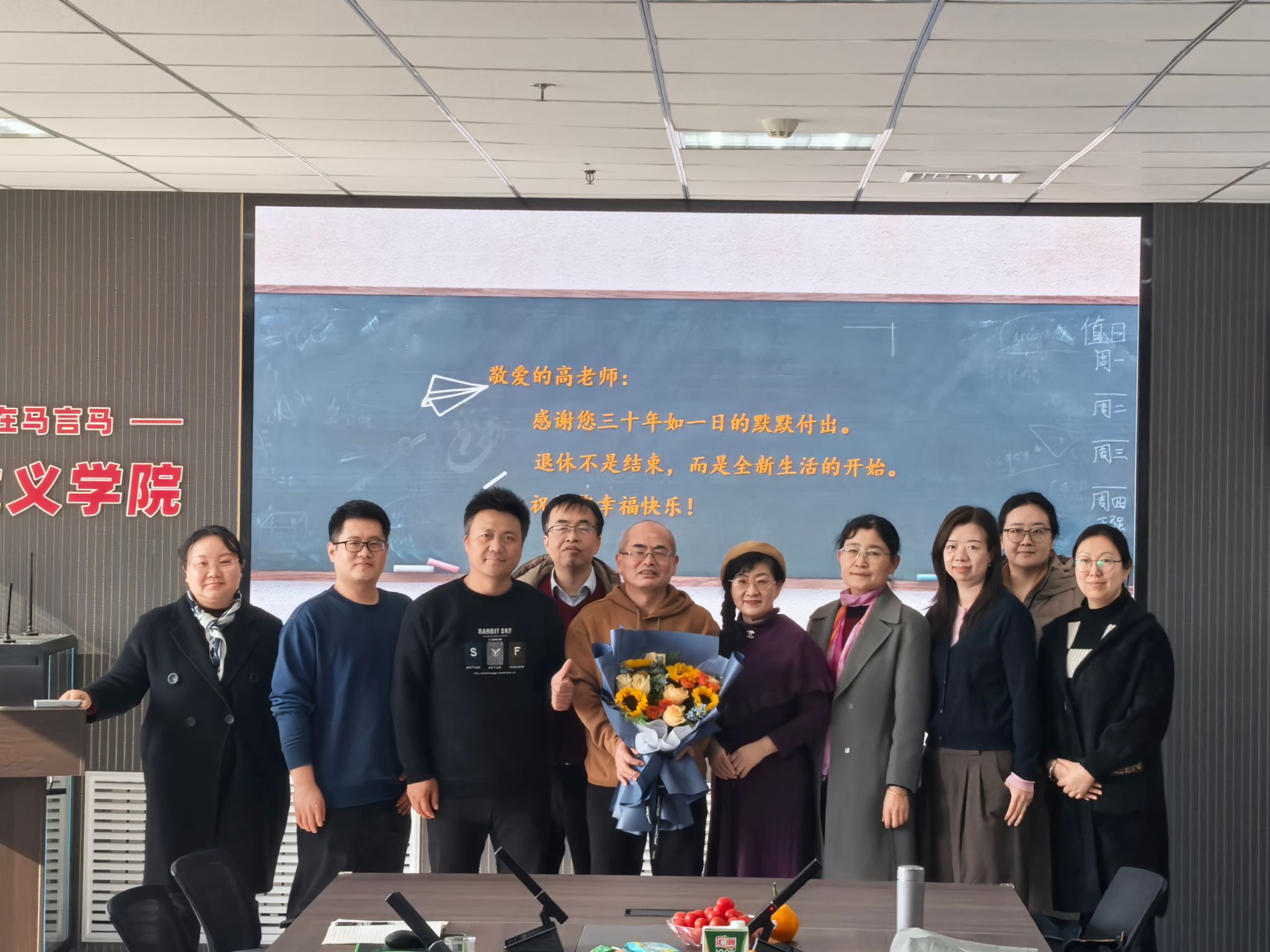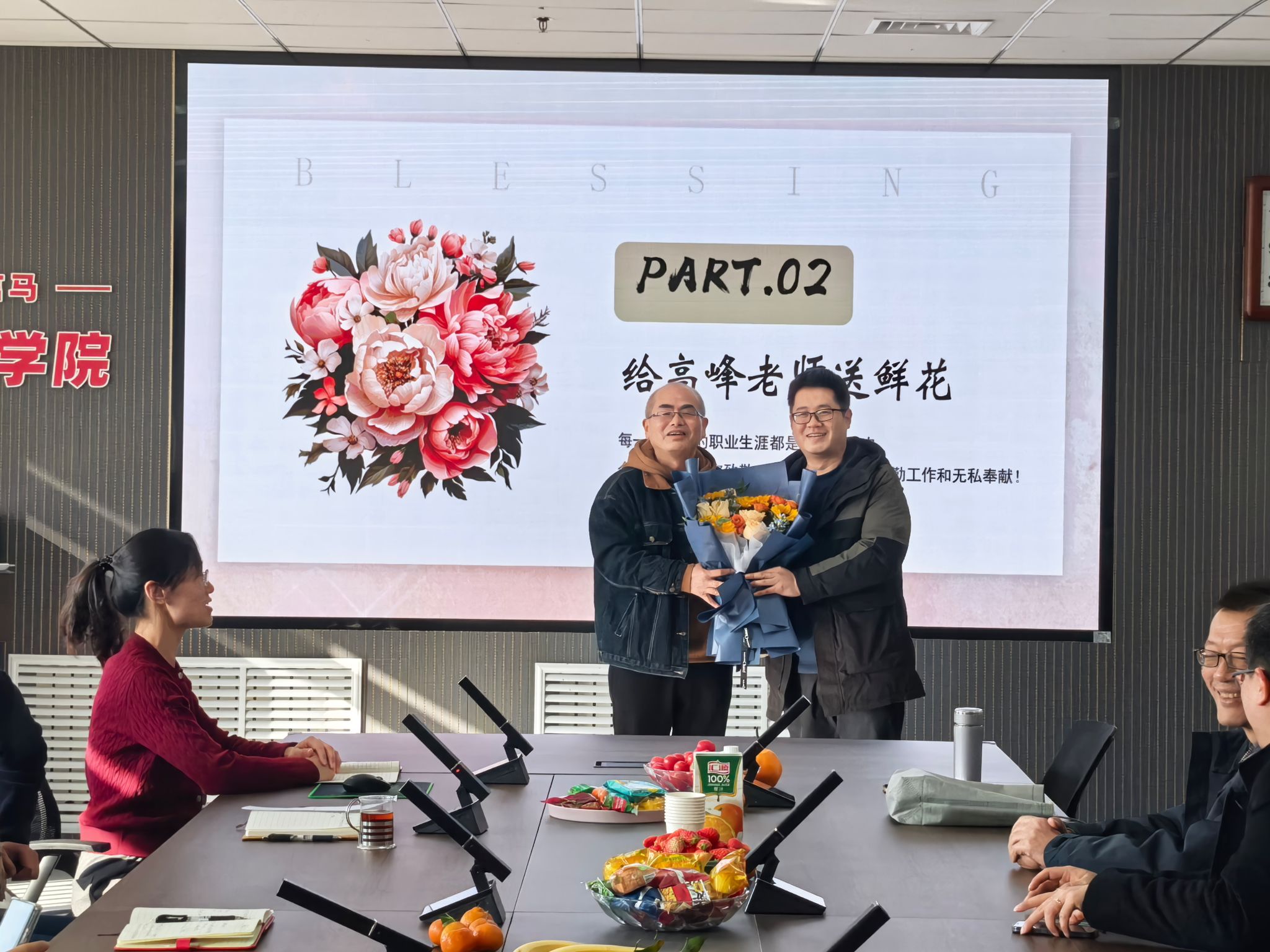 随后,公司领导和教师代表为高老师敬献鲜花与纪念品,送上最诚挚的问候与祝福。