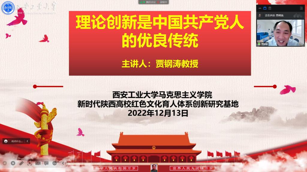 贾钢涛教授从“我们党的历史是充满理论创新、理论创造的历史”、“我们党理论创新的三次伟大飞跃”和“新时代的基础上继续新的伟大创新”三个方面进行了系统翔实的阐析。报告将中国共产党理论创新的历史逻辑、实践逻辑和理论逻辑有机结合,凸显理论创新的重大意义。报告内容充实、条理清晰、理论性强,对师生全面系统的把握党的理论创新、深入领会“理论先行”具有很大的启发性。