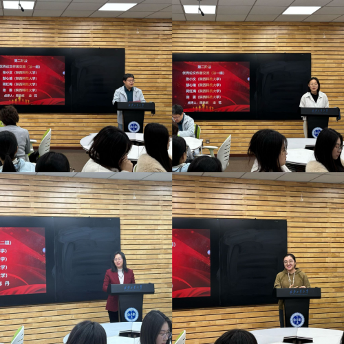 会议第二阶段,一等奖获奖同学依次上台,分享了他们的论文基本观点、写作思路、框架设计以及写作过程中的宝贵经验与独到见解。MK体育的周意岷副教授和梁花副教授对第一组优秀论文进行了点评,陕西科技大学MK体育的闫鹏副教授和郭丹副教授则对第二组优秀论文进行了点评。老师们从论文的选题意义、学术观点、框架结构、创新之处与提升建议等多个维度进行了深入剖析,并鼓励同学们继续努力,不断加强自身的科研能力,以取得更高学术成果。