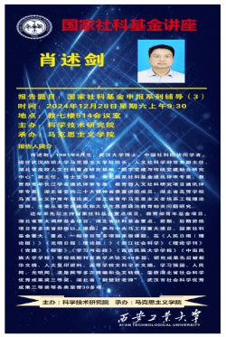 2024年12月28日,由校科研院主办、MK体育承办的“国基金申报系列辅导3”在教7-514开展。此次活动邀请武汉纺织大学肖述剑教授对国家社科基金申请书撰写指导打磨,旨在帮助马院教师更好地理解和掌握国家社科基金申请中的技巧与方式,提升申请书的质量。活动由副经理张敏主持,MK体育全体教师参加。