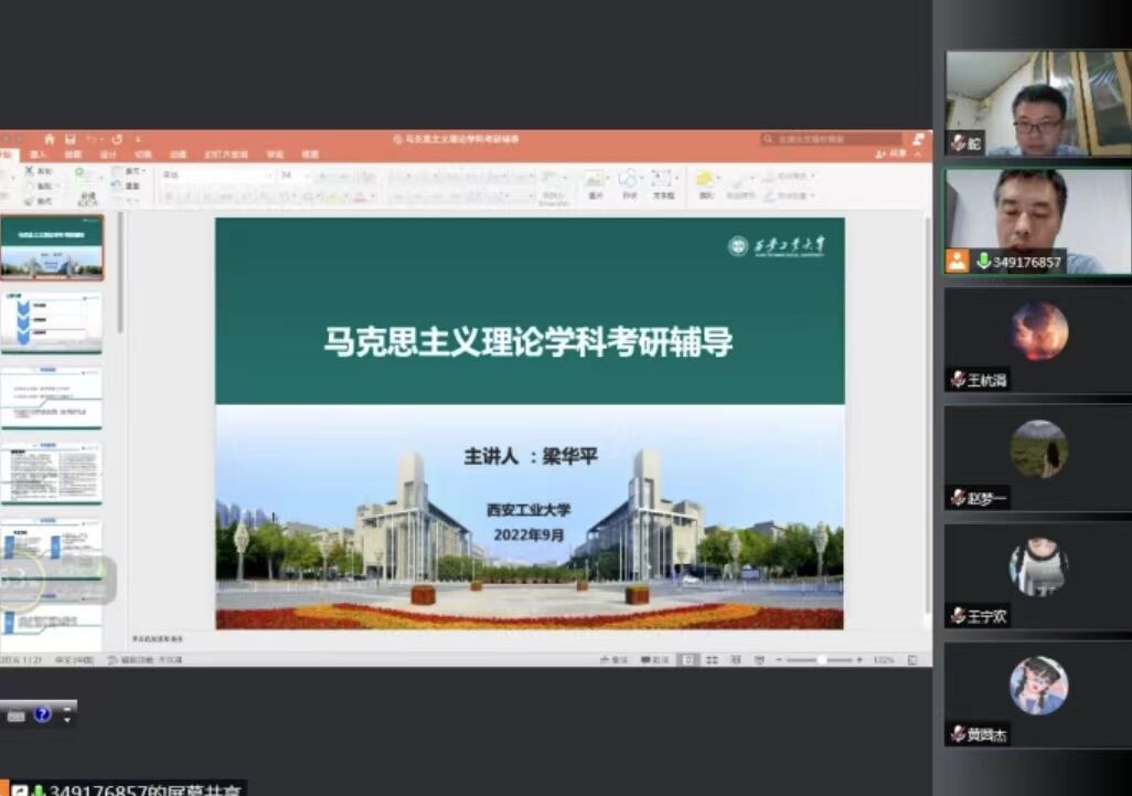 9月16日,MK体育副经理梁华平通过腾讯会议形式面向西安文理公司MK体育大三、大四员工进行了考研辅导。辅导从学科现状(公司招生学科专业分布)、如何备考(专业课考试科目及重难点)及注意事项几个方面进行了讲解,并与部分员工进行了线上互动交流。通过本次宣讲,使该校员工进一步了解公司马克思主义理论学科的特色优势、招生情况、导师队伍及复习备考注意事项,有利于增强员工报考的意愿。