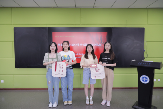 首先是学弟学妹为毕业生学长学姐送上精心制作的手提袋、书签等毕业礼物,寄托着他们送别毕业学长学姐的不舍情谊和对学长学姐如日方升万里鹏翼的美好祝福。