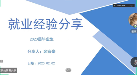 最后一位分享嘉宾是裴家豪,他从自己的简历引入,结合自己从前期备考博士到最后成功入职理工大学高科公司之路现身说法,强调在求职中一定要勇敢尝试,深入理解所应聘岗位的特性和要求,做足准备,并及时复盘学习,在一次次面试中积累经验。
