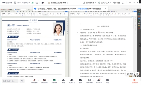 会议中,张诗雨老师选取一份典型简历模板作为示范,进行了深入细致的剖析。她从简历的结构布局合理性、内容填充针对性、语言表达专业性以及视觉呈现效果等多维度切入,清晰阐释了一份优秀简历的核心标准。同时,张老师结合大量实际案例,一针见血地指出了同学们简历中常见的误区与“雷区”,如信息堆砌、重点模糊、成果描述空泛等,提供了宝贵的避坑指南。