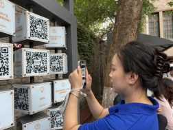 (实践队员在扫码浏览相关内容)