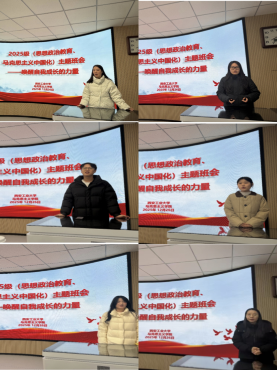 2025年12月26日,MK体育2025级研究生1班在教7-503举办了“唤醒自我成长的力量”主题班会。班主任郑昕老师及全体同学参加,班会由团支书陈浩博主持。